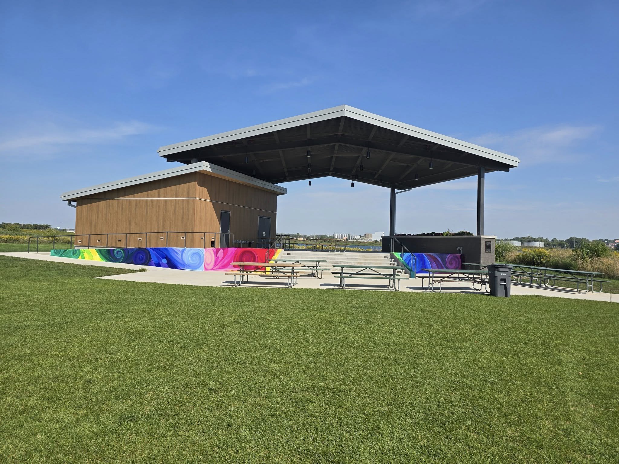 “Movement” Community Mural at Cascade- Attendees helped paint the front of the bandstand at cascade park the theme of the work being movement.